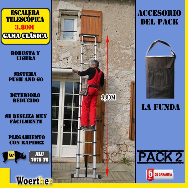 Como todos los productos Woerther, la escalera telescópica 3,80m con su barra estabilizadora tiene una garantía de 5 años.