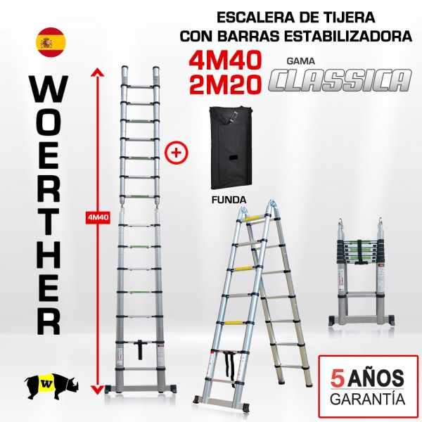 Escalera de tijera telescópica Woerther 4,40m. Triple función - Pack 1