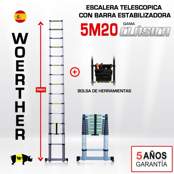 Como todos los productos Woerther, la escalera telescópica 3,80m con su barra estabilizadora tiene una garantía de 5 años.