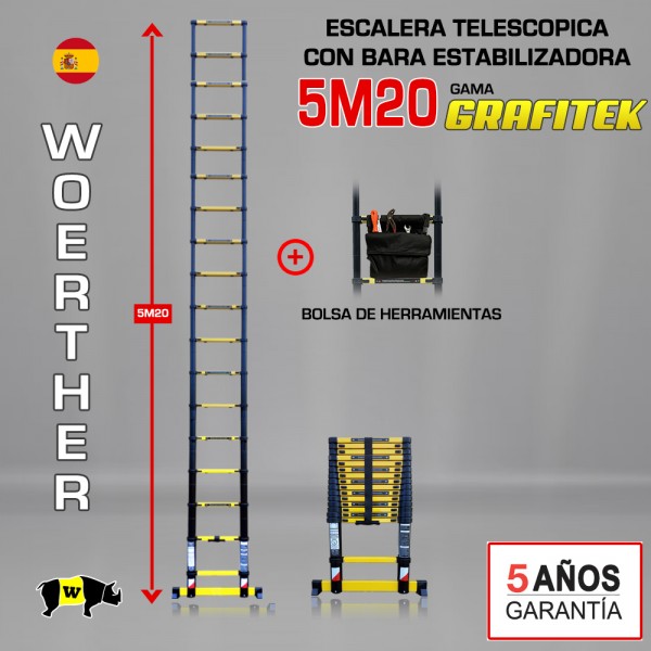 Escalera telescópica Woerther gama GRAFITEK 5m 20 - Pack 2