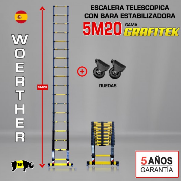 Escalera telescópica Woerther gama GRAFITEK 5m 20 - Pack 3
