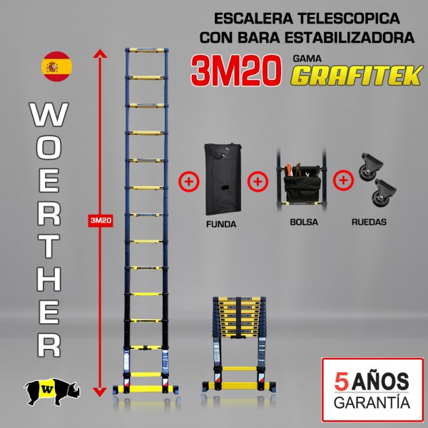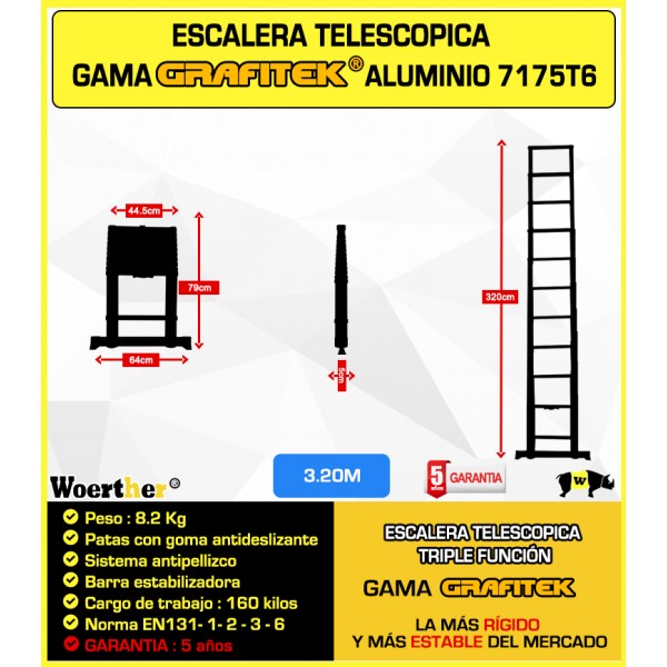 Escalera telescópica Woerther gama GRAFITEK 3m 20 - Pack 5
