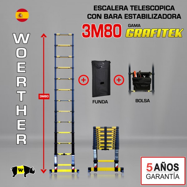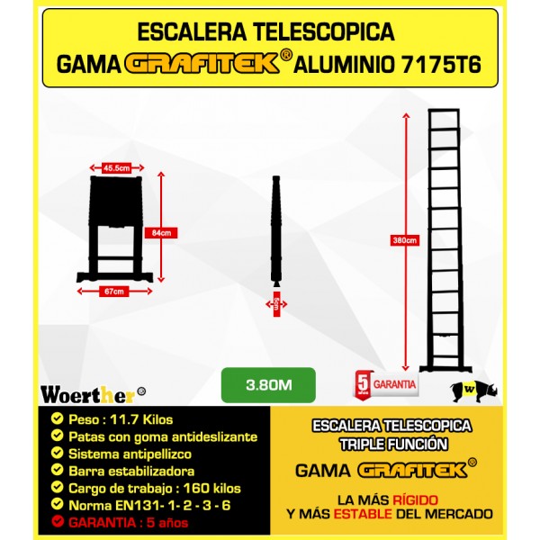 Escalera telescópica Woerther gama GRAFITEK 3m 80 - Pack 4