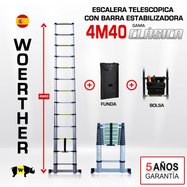 Como todos los productos Woerther, la escalera telescópica 3,80m con su barra estabilizadora tiene una garantía de 5 años.