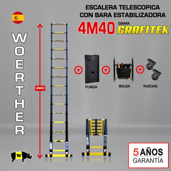 Escalera telescópica Woerther gama GRAFITEK 4m 40 - Pack 5
