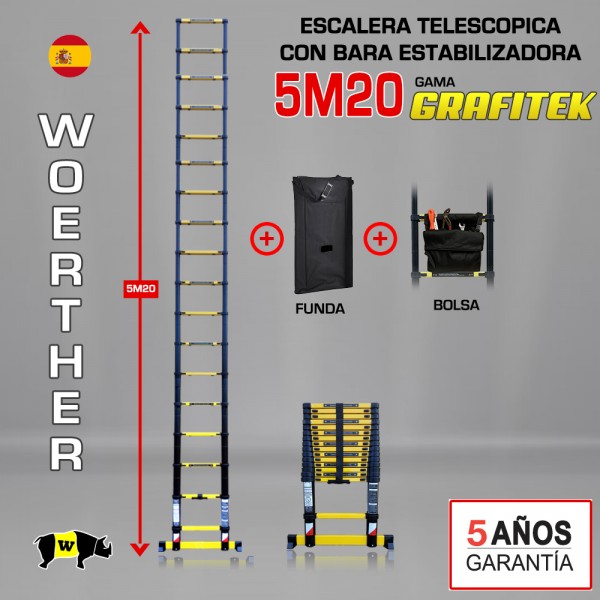 Escalera telescópica Woerther gama GRAFITEK 5m 20 - Pack 4