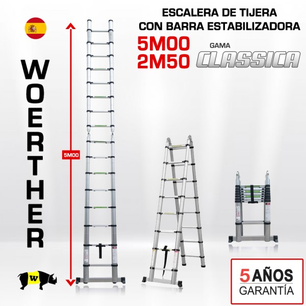 ESCALERA DE TIJERA TELESCÓPICA WOERTHER CLASSIC 5M/2M50