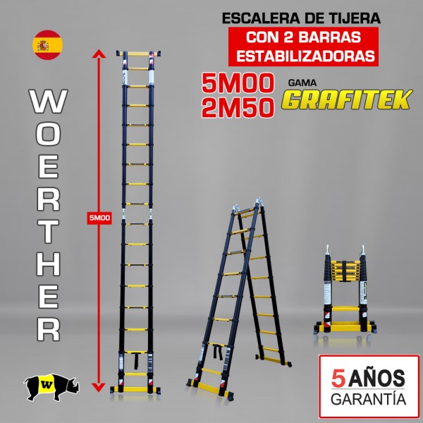 Escalera de tijera telescópica Woerther GRAFITEK 5m - Triple función