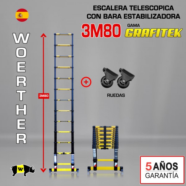 Escalera telescópica Woerther gama GRAFITEK 3m 80 - Pack 3