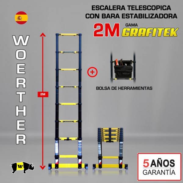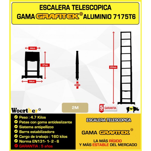Escalera telescópica Woerther gama GRAFITEK 2m - Pack 2